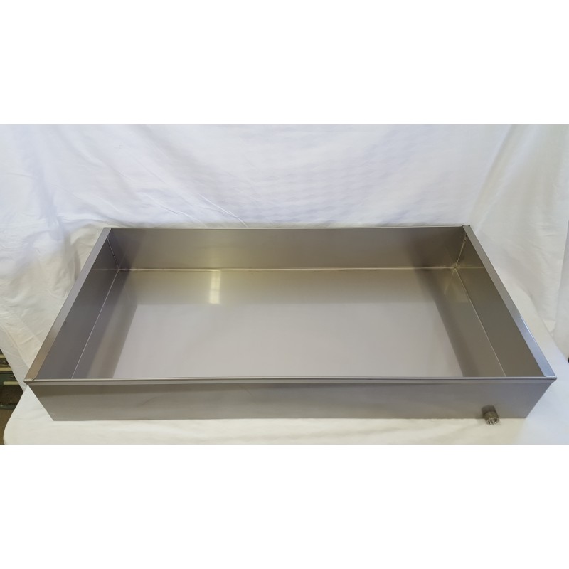 24"x48"x7" maple syrup pan. Made from 18 ga 304 stainless steel. It is fully tig welded and includes a 3/4" npt threaded fitting welded near the bottom corner.